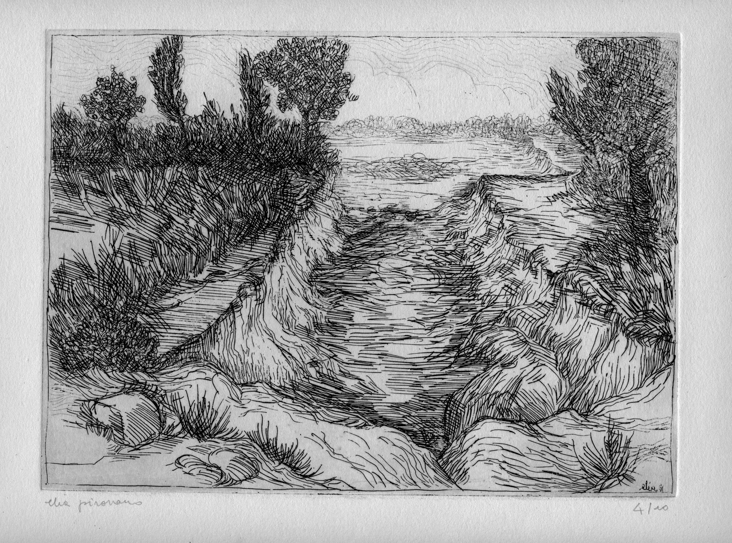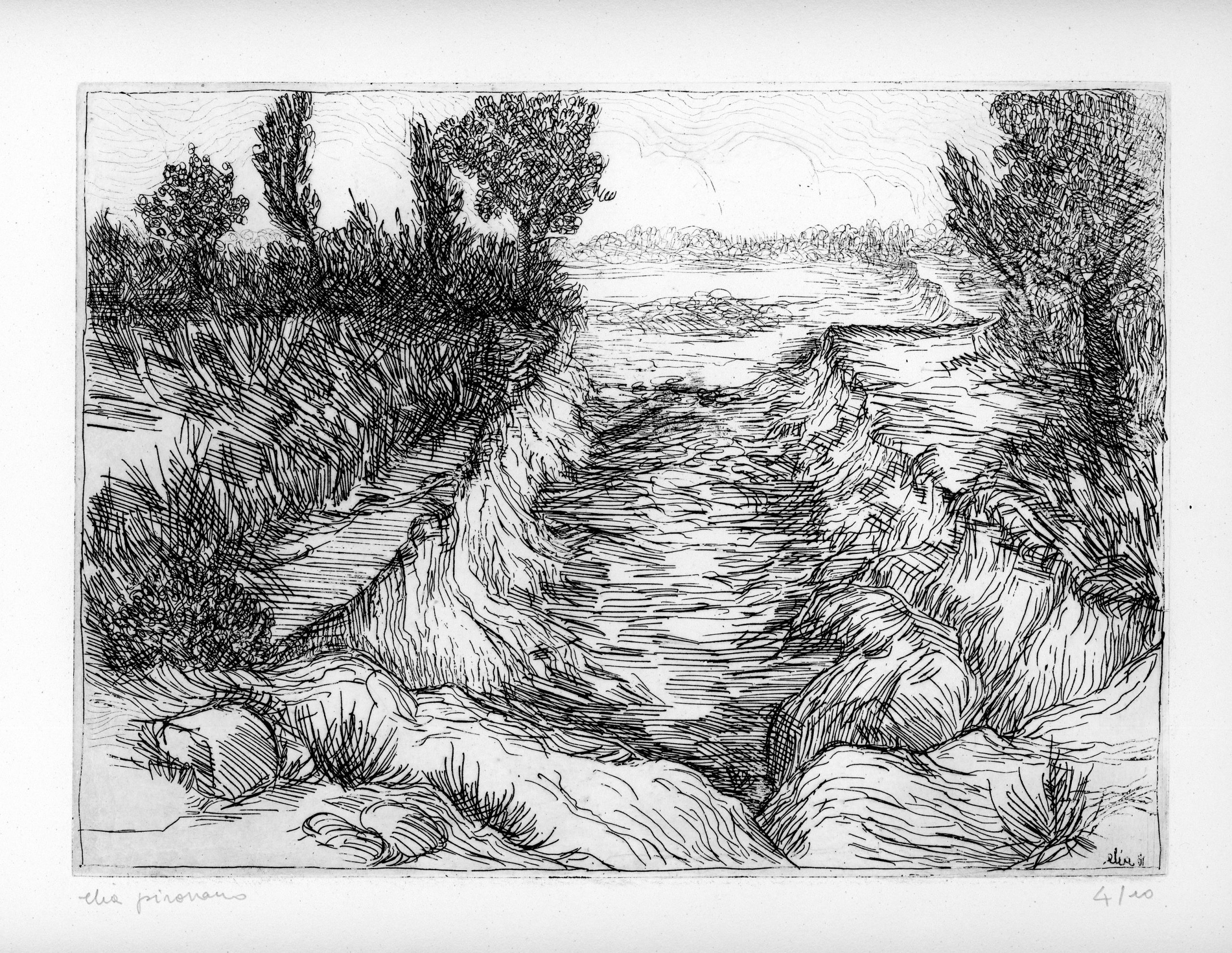 In questa sezione sono raccolte incisioni realizzate con diverse tecniche: acquaforte, acquatinta, puntasecca, ceramolle, xilografia e litografia. Le opere sono il risultato di una lunga e approfondita sperimentazione delle tecniche, portata avanti nel corso di decenni.